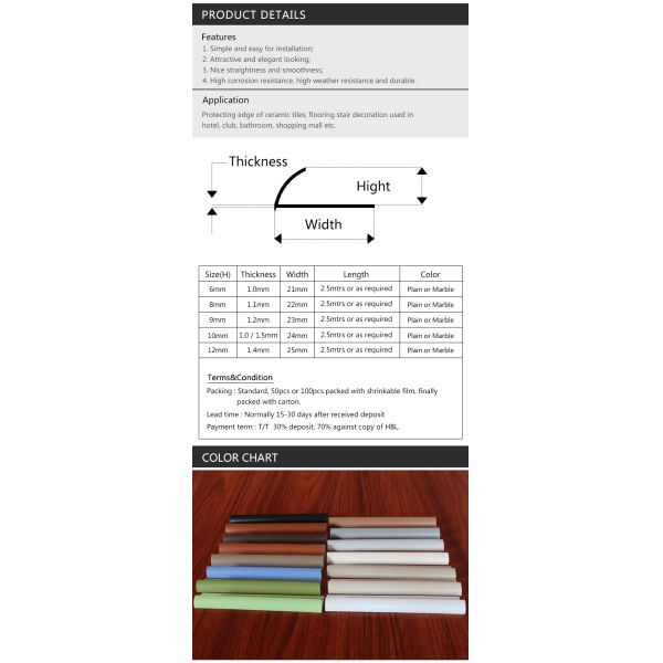 Corner Aluminium Tile Strip Custom PVC Plastic Strip Tile Trim Fireproof Images |